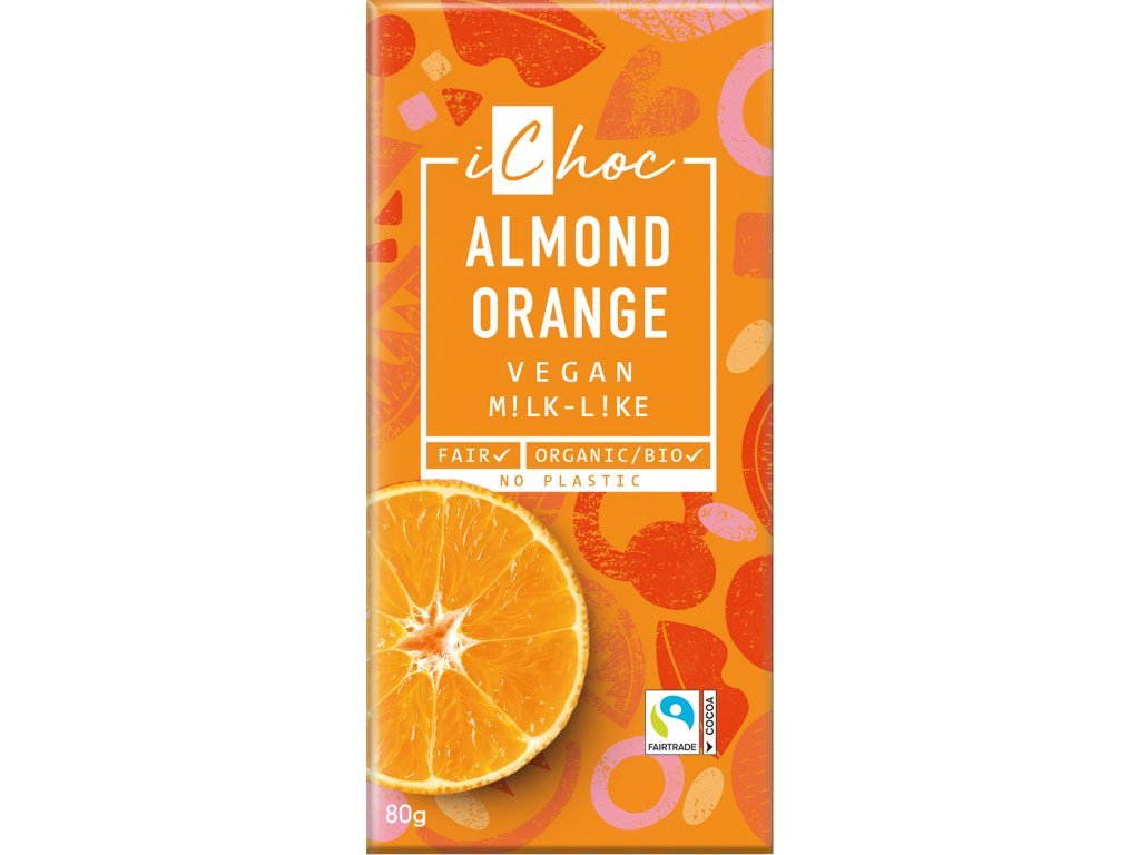 Ciocolata iChoc migdale-portocale vegan 80g BIO