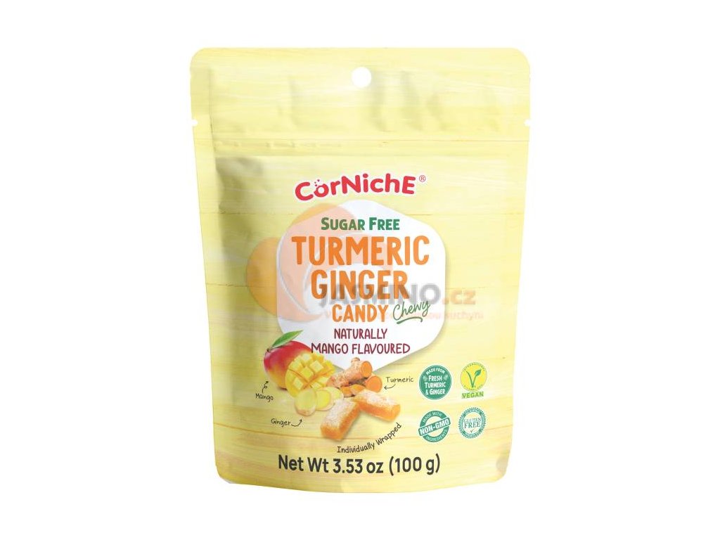 CORNICHE Žvýkací bonbóny s kurkumou a zázvorem s příchutí manga 100g