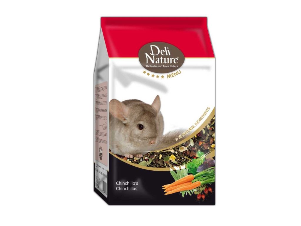 Chinchilla au o digestie sensibilă și au nevoie de o dietă care să conțină multe fibre pentru a se dezvolta în mod optim și a-și scrâșni dinții. Meniu Deli nature 5* Chinchilla este un amestec slab cu un continut ridicat de fibre pentru a satisface in mod optim nevoile chinchilla.