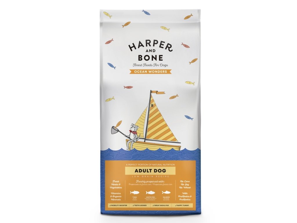 Harper and Bone Dog Adult Large & Minuni medii ale oceanului compuse doar din ingrediente de cea mai înaltă calitate, cu o proporție ridicată de carne, adaos de superalimente și legume proaspete, garantând nutrienți benefici și gust natural pentru o nutriție perfect echilibrată.