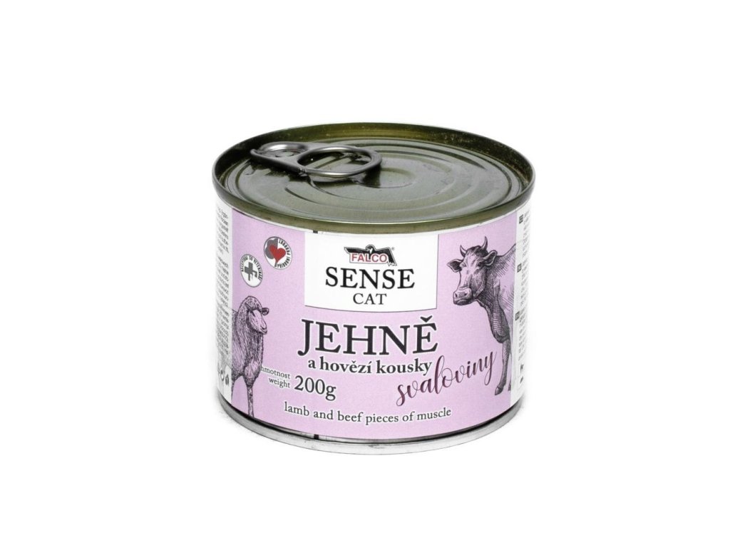 FALCO SENSE Bucăți de mușchi de miel și vită de pisică, la conserva 200 g