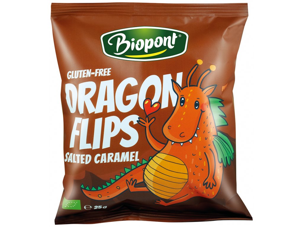 Aceste chipsuri pentru copii sunt făcute din făină de porumb și, prin urmare, nu conțin gluten în mod natural. Sunt îndulciți ușor cu zahăr din trestie, aromatizate cu un praf de sare de mare și aroma naturală de caramel. Nu conțin ulei de palmier, doar puțin ulei de floarea soarelui. Este perfectă ca o gustare dulce în excursii, pentru copii la școală, sau doar pentru o gustare.