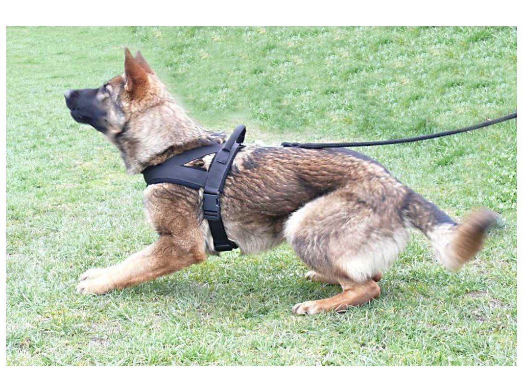 Este realizat din chingă de polipropilenă cu lățimea de 40 mm, căptușită complet cu spumă și micro plus. Hamul este foarte ușor de pus pe câine. Prinderea acestuia se face cu o cataramă mare, de 40 mm, din poliamidă, așa-numita trident. Datorita materialelor folosite, intretinerea acestuia este si foarte usoara. Se poate spala la masina. Utilizarea sa este foarte versatilă, mai ales acolo unde câinele ar trebui să tragă și nu a fost sugrumat de un zgarda clasic. de ex. la antrenamentul de apărare, unde mânerul poate fi folosit pentru a ține și controla câinele în siguranță.