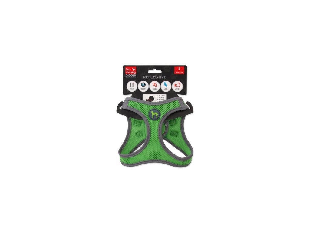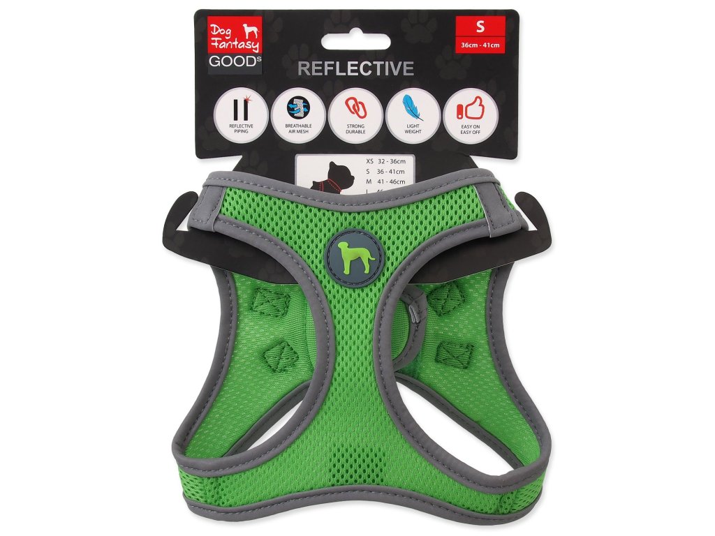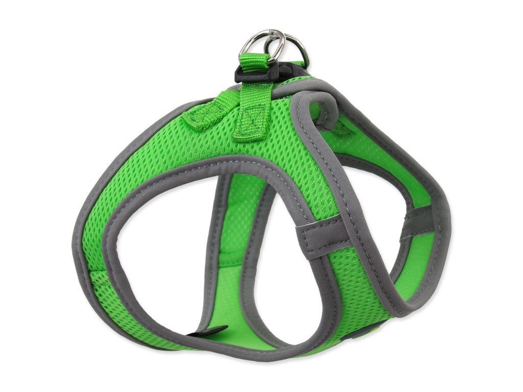 - Existăelemente reflectorizante cusute în jurul întregii circumferințe a hamului pentru mișcarea p.sa .; >trei opțiuni de culoare (albastru, lime, portocaliu).