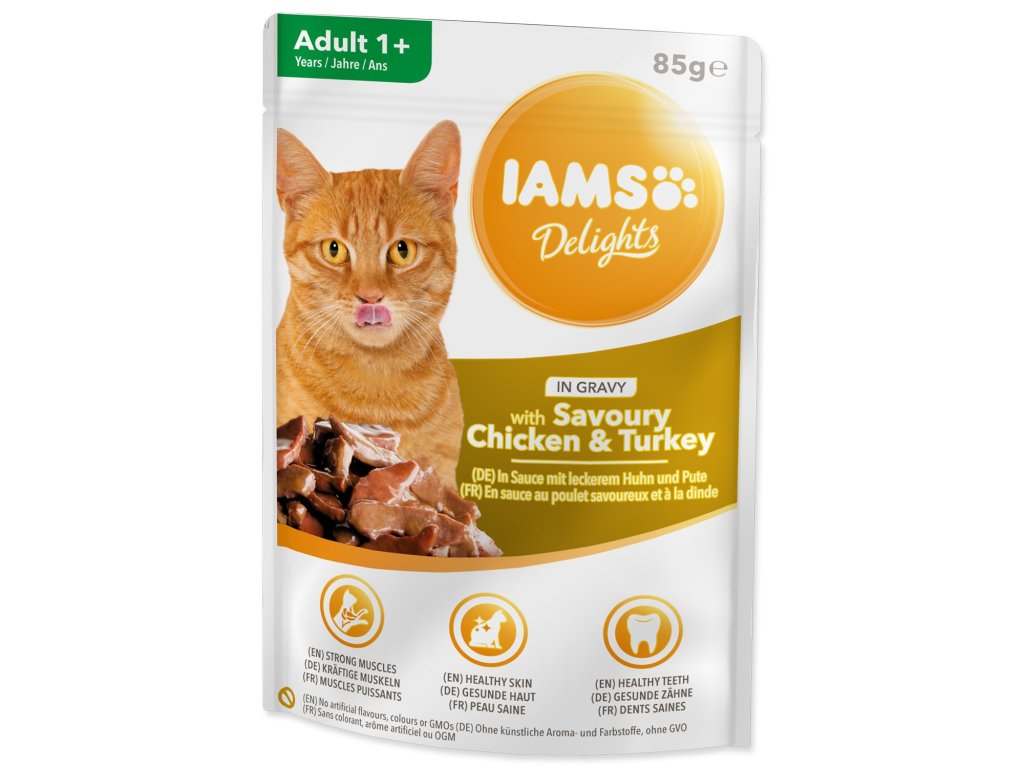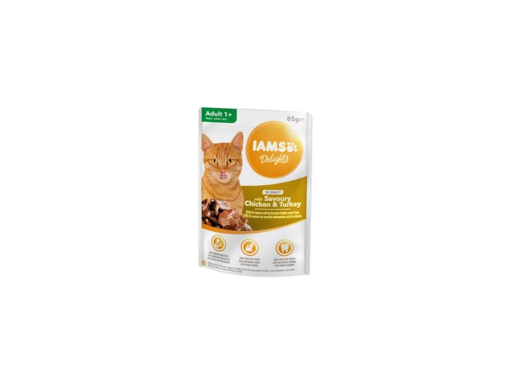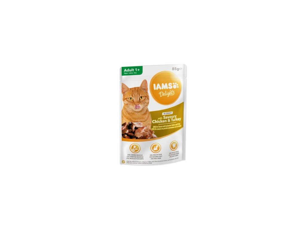 IAMS Delights Pui și curcan pentru adulți, în sos, 85 g