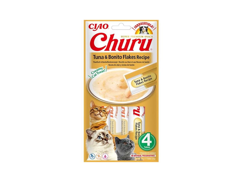 Inaba Churu gustare pisică ton și fulgi de bonito 4x 14g