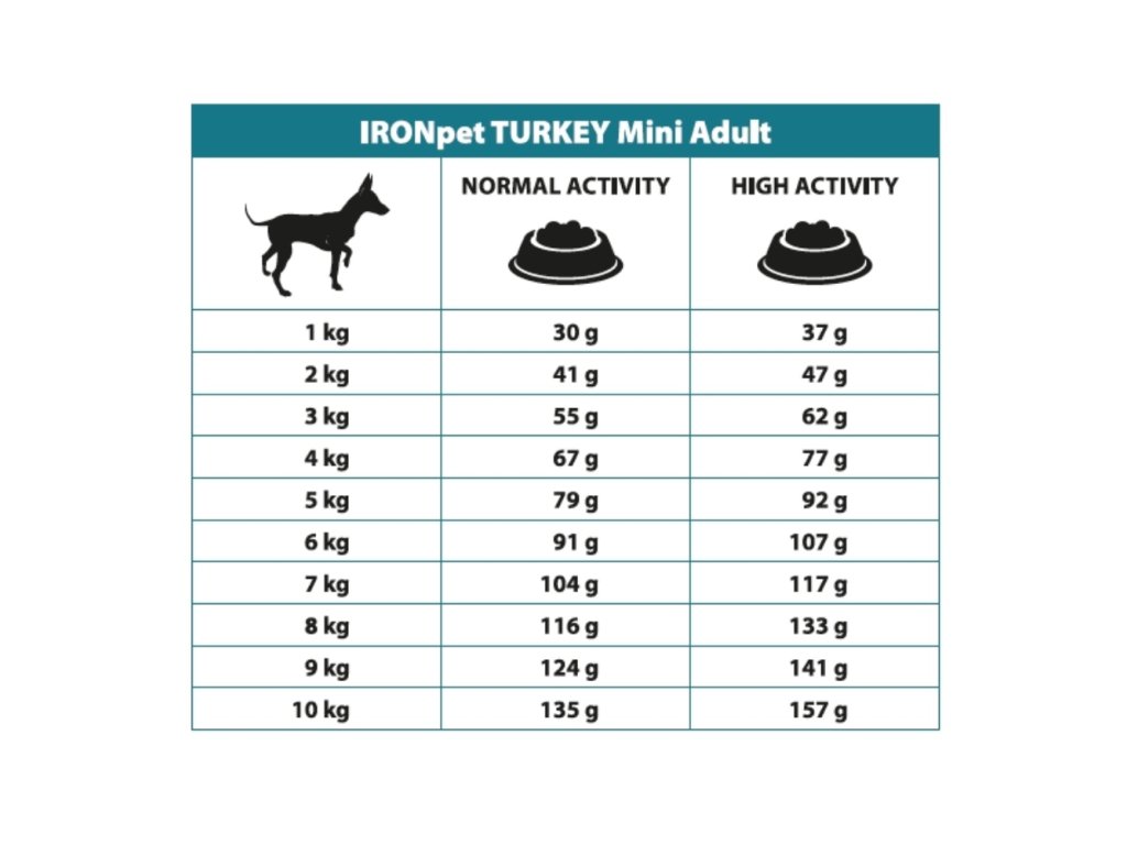 Doza zilnică recomandată (vezi tabel): Dozele de hrănire sunt orientative și trebuie adaptate la individualitatea și temperamentul câinelui. Este necesar să se asigure accesul la apă potabilă proaspătă pe tot parcursul zilei.