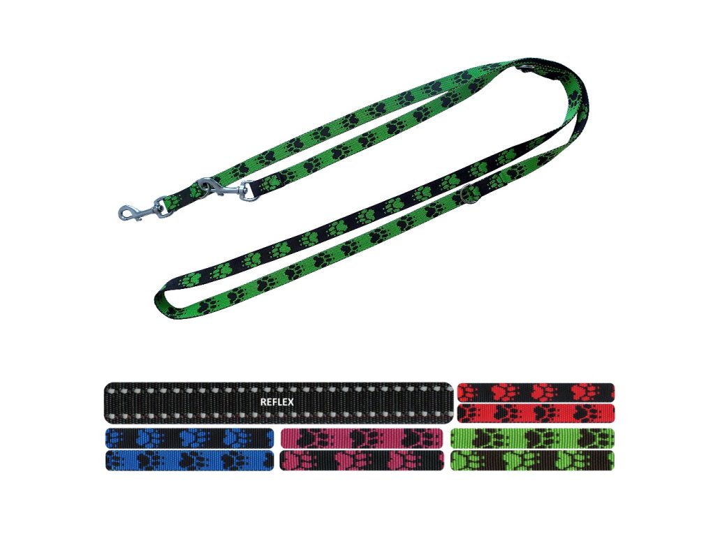 lesa comutabila cu curea, folosind ochi metalici pe lungimea lesei, lesa poate fi scurtata si prelungitaLatime: 20 mm