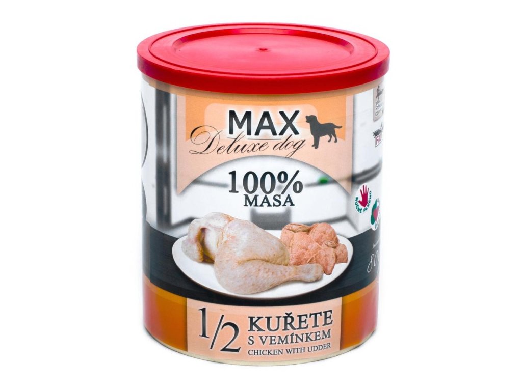 MAX Deluxe Dog 1/2 pui cu uger, conserva 800 g