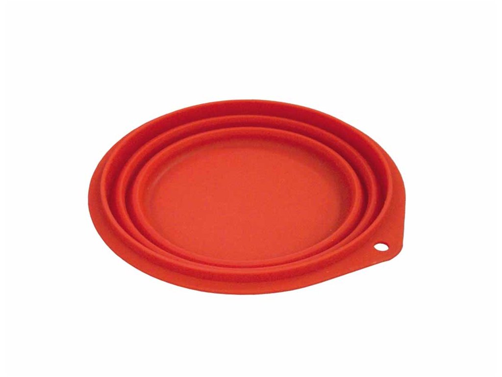Bolul perfect de călătorie pliabil. Material silicon flexibil. Potrivit atât pentru alimente, cât și pentru apă. Când este pliat, ocupă foarte puțin spațiu. Ideal pentru călătorii cu un câine. Dimensiune ø 13cm si volum aprox. 500 ml. Dimensiune (inaltime) dupa pliere 21 mm. Culoare roșu.Parametri suplimentari