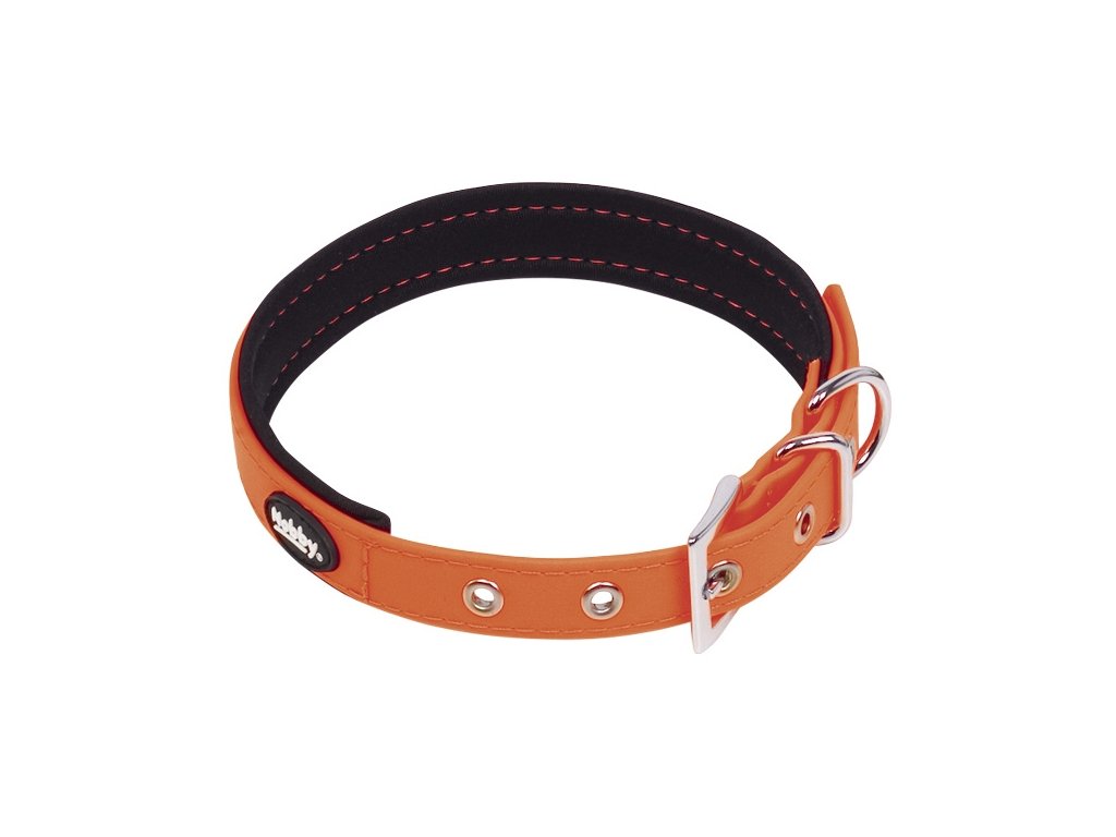 Gulerul din plastic din colecția Nobby COVER este realizat din două straturi (țesătură de poliester cu acoperire PVC + căptușeală din neopren). Neoprenul este foarte moale și flexibil, neabsorbant, astfel încât zgarda nu miroase după scăldat câinelui. Gulerul este flexibil si in acelasi timp foarte puternic. Foarte usor de curatat, poate fi dezinfectat. Pentru circumferinta gatului 35-45cm Latime guler 20mm Culoare portocalie (PVC) + captuseala neopren negru. Avantaje: rezistenta la UV, antibacterian (rezistenta la mucegai), impermeabilParametri suplimentari
