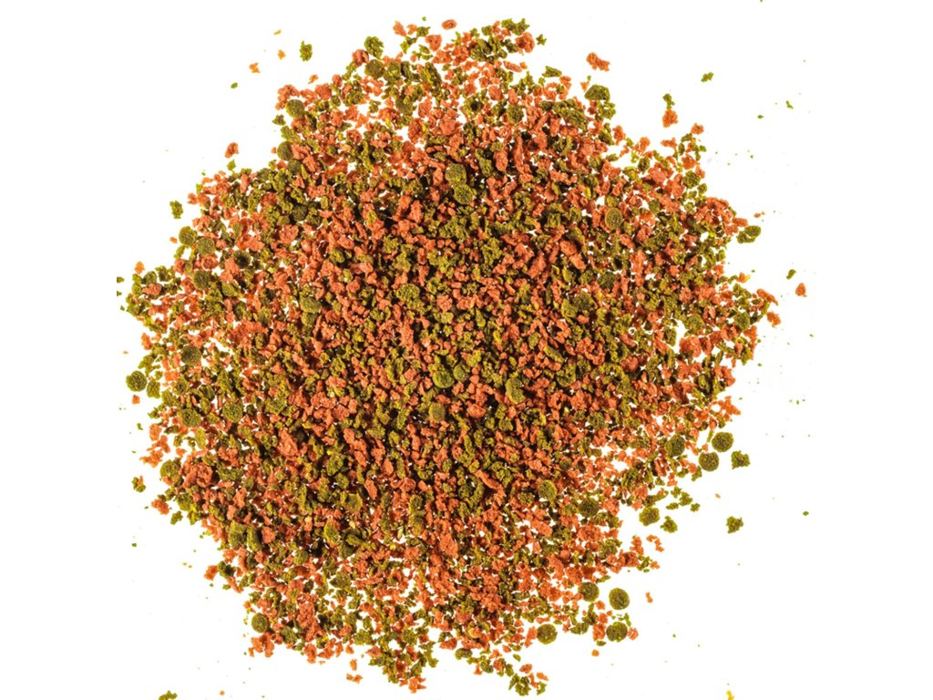 Hrană granulată pentru pești ornamentali mici, este ohrană care se scufundă lent, cu un diametru foarte mic de 0,3-1 mm.