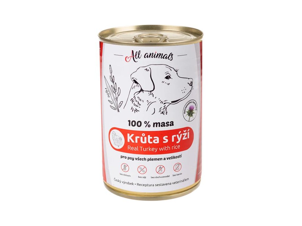 TOATE ANIMALELE conc. pentru caini curcan macinat cu orez 400g