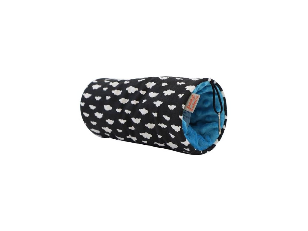 Tunel pentru animale de companie suspendat M, nori alb-negru, minky turcoaz 10x10x25cm