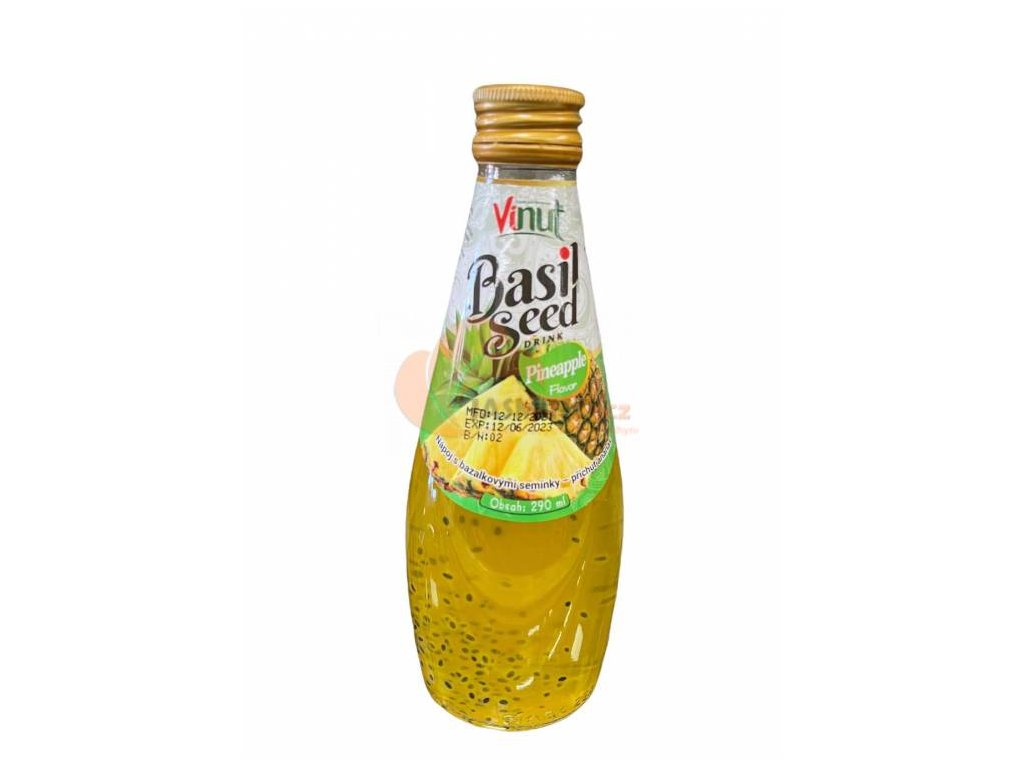Ingrediente: apa, suc de ananas, zahar, seminte de busuioc, acid citric, aroma de ananas, acid ascorbic, guma gellan, benzoat de sodiu (conservant), sucraloza E955, colorant E102, E110. Valori nutritive la 100ml: Energie 167kJ/40kcal / Grasimi 0g / Carbohidrati 10g zahar 9,5g / proteine 0g / Sare 0,025g. Depozitare: A se păstra într-un loc uscat și întunecat. A se pastra la frigider dupa deschidere. Țara de origine: Vietnam.Parametri suplimentari