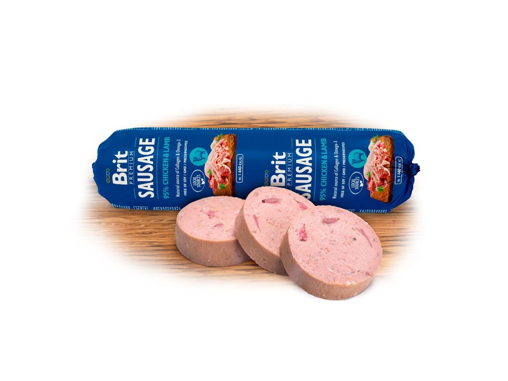 Brit Premium Meat Sausage je kompletní krmivo pro psy, nebo ideální doplněk ke granulím, BARF stravě a vařenému masu. Vhodné pro psy s citlivým zažíváním a starší psy.