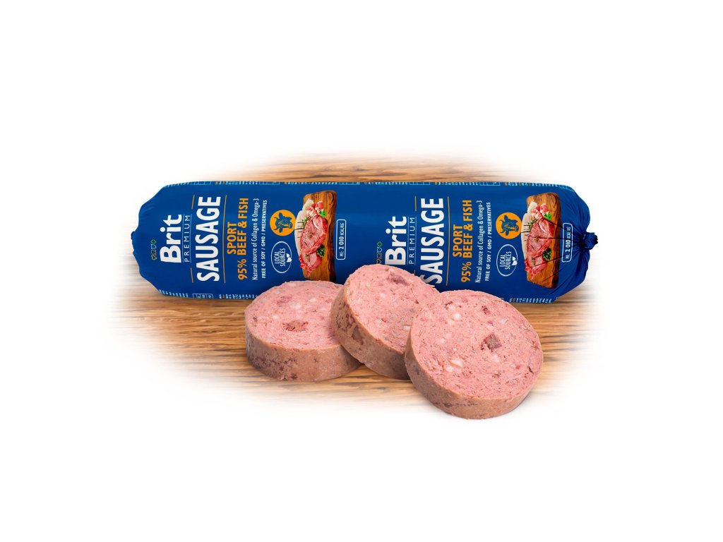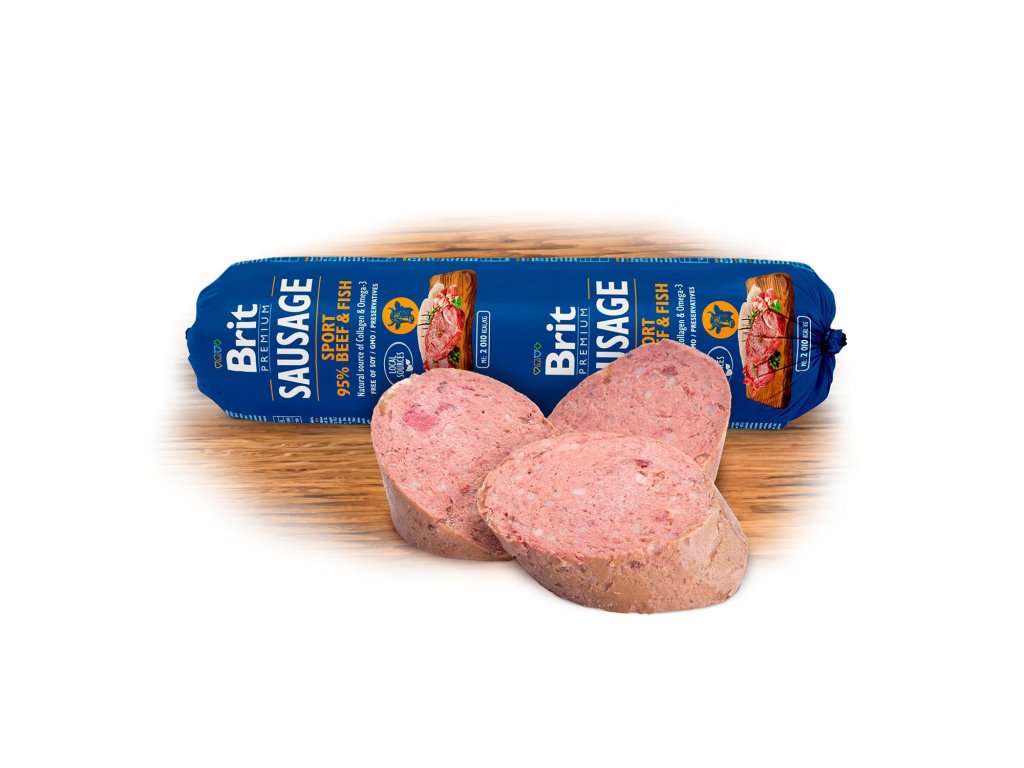 Brit Premium Sausage je kompletní krmivo pro psy, nebo ideální doplněk ke granulím, BARF stravě a vařenému masu. Vysoký obsah hovězího a rybího masa i jater, pozitivně působí na výživu vašeho psa.