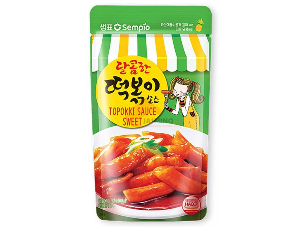 - Složení: Voda, pasta z feferonky (pšenice), Kukuřičný sirup s vysokým obsahem fruktózy, Kukuřičný sirup, Cukr, Sójové koření, Cibule, Extrakt z chobotnice, Lihoviny, Rajčatový kečup, Ananasové pyré, ančovy extrakt, Česnek, Stabilizátor: E1422, Pšeničný proteinový extrakt v prášku, Barva E160c, extrakt z grapefruitových semen. Alergeny: sója, ryby, pšenice. Nutriční hodnoty na 100g: Energie 852 kJ / 201 kcal Tuk 0,4g z toho nasycené mastné kyseliny 0g Sacharidy 47g z toho cukr 30g Protein 2g Sůl 3g Příprava: 1. Nakrajte cibule, zelí, pórek a topokki na kostky. 2. Přídejte 150ml vody a topokki koláče do hrnce a vařte. 3. Přídejte zelí, cibule a Sempio omáčku do hrnce. 4. Přídejte pórek a vařte ještě 2 minuty. Skladování: Skladujte v suchu a temnu Země původu: Korea.Doplňkové parametry