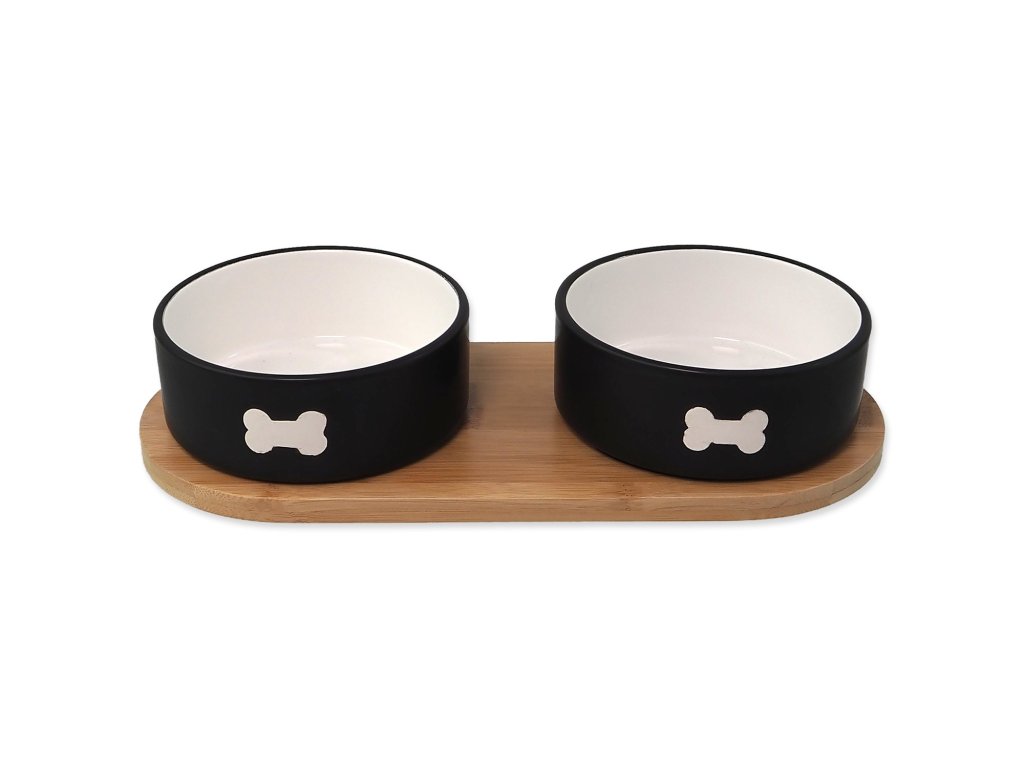 Set Dog Fantasy misky keramické s podtáckem černé kost 2x 13x5,5cm, 400ml