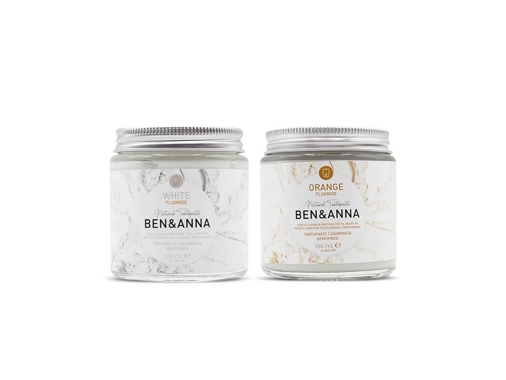 Zubnú pastu v sklenenej dózičke od nemeckej značky Ben & Anna budú milovať nielen vaše zuby. Krásne vonia, príjemne pení a zanecháva svieži pocit v ústach. Jej 100% prírodné zloženie s prídavkom fluoridu pomáha predchádzať zubnému kazu. Extrakt z harmančeka upokojuje ďasná, výťažky zo šalvie a rakytníka pomáhajú pri zápaloch aj paradontéze. Vďaka obsiahnutému mätovému oleju potom dostane aj obyčajný bozk úplne iný rozmer. Pasta má stredný stupeň abrazivity (RDA 75) a neobsahuje ftaláty, parabény, mikroplasty ani SLS.Dodatočné parametre