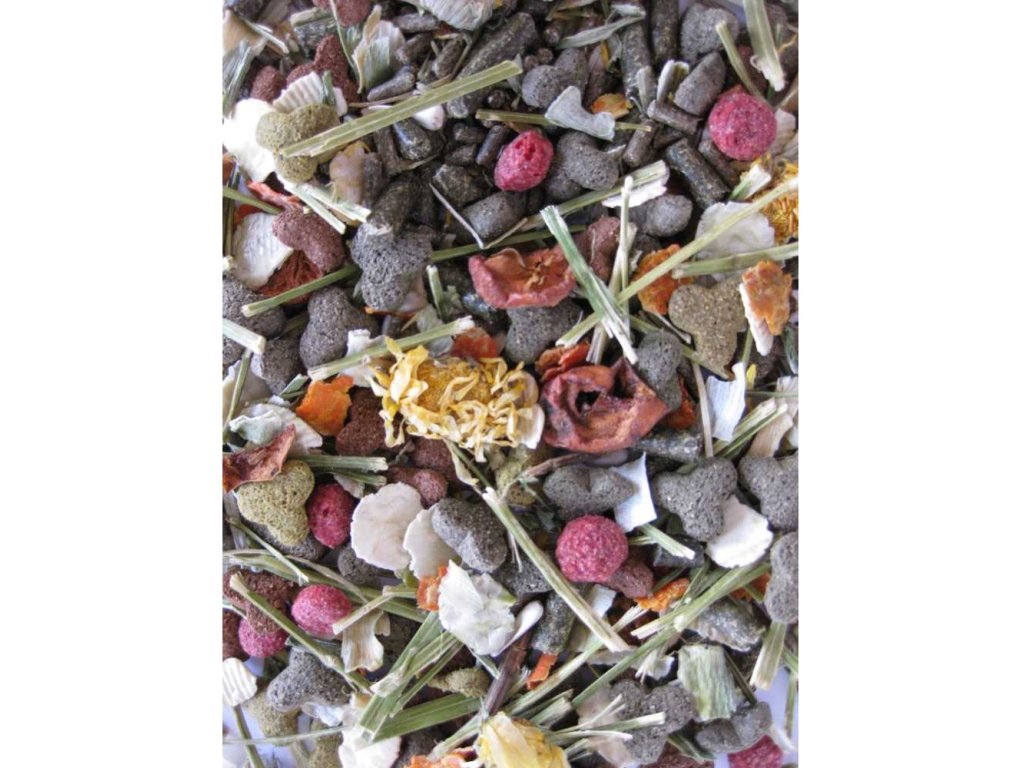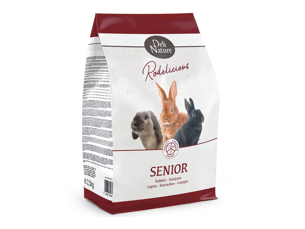 Deli Nature Senior je extrémne pestrá a vyvážená zmes. Krmivo založené na prírodných surovinách je prispôsobené nutričným potrebám starších králikov, králikov s nadváhou a králikov s citlivým tráviacim zažívaním. Zmes prispieva k extra vitalite, energii a optimálnej kondícii. S menším obsahom králikov lúhé vlákna z lucerny a timotejového sena podporujú trávenie. Obsahuje extrudát rodelicious vitality (15%), timotejku, extra surovú vlákninu, bylinky a zeleninu. Zloženie: lucerna (14%), hrachové vločky (10%), sójové šupky rot, extrudovaná pšenica, sušená mrkva (4 %), hrachová vláknina (4 %), kukuričný škrob, sušené jablko, lucernová slama (3 %), kukurica, sójová krupica, sušená červená repa (2 %), rohovník (2 %), petržlen , sušený pastinák (1,04 %) ), slnečnicový olej, ľanový olej, uhličitan vápenatý, fosforečnan vápenatý, skorocel (0,2 %), žihľava (0,05 %), ľanové semienko, púpava (0,05%), echinacea (0,05%), extrudovaná ryža, harmanček (0,04%), jahoda listy, oregano (0,03%), kurkuma (0,03%).