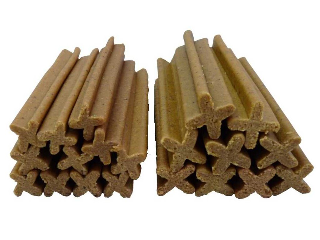 Špeciálne vyvinutý tvar do X pre zdravý chrup a ďasná. Pevnejšia štruktúra maškrty zo zubov stiera plak, takže sa na zuboch nevytvára zubný kameň as ním spojené problémy. Ľahko stráviteľné. Obsahuje prírodné vitamíny a minerálne látky.