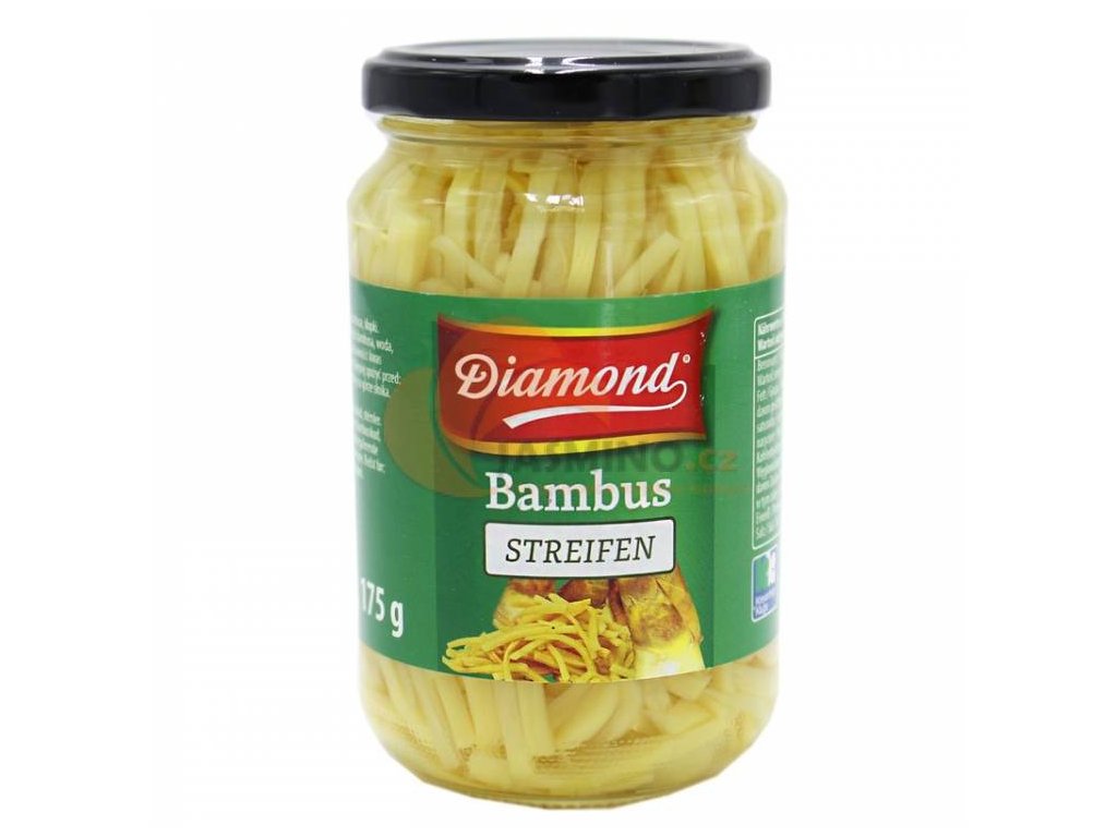 - Zloženie: Bambusové výhonky, voda, regulátor kyslosti: kyselina citrónová (E330). Nutričné hodnoty na 100g: Energia 49 kJ / 12 kcal / Tuk 0,5 g z toho nasýtené mastné kyseliny 0,1 g / Sacharidy 0,7 g z toho cukor 0,1 g / Proteín 1,1 g / Soľ 0,01 g. Skladovanie: Uchovávajte v suchu a chlade mimo priameho svetla. Krajina pôvodu: ČínaDodatočné parametre
