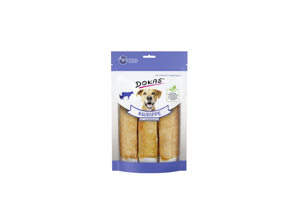 Žuvacie kosti z hovädzej kože v tvare rebierok sú pre ešte väčší pôžitok obalené mäsom z kuracích pŕs. Žuvanie pomáha udržiavať zdravé zuby a ďasná. Vysoká kvalita použitých surovín zaručuje výraznú chuť a vôňu. Sú veľmi obľúbené pre svoje prírodné zloženie. Maškrty Dokas sú bez konzervantov, umelých farbív, dochucovadiel a glycerínu. Vrecko má praktické uzatváranie, maškrty tak zostanú dlhšie čerstvé a voňavé. Zloženie: hovädzia koža 80%, filet z kuracích pŕs 16%, vedľajšie rastlinné produkty, minerálne látky Analýza: hrubé bielkoviny 89,6%, hrubé oleje a tuky 3,4%, hrubé popoloviny 2,6%, hrubá vláknina 0,5%, vlhkosť 15%. Zaistite dostatok pitnej vody. Po otvorení starostlivo uzavrite zipsom a skladujte v suchu a chlade. Balenie obsahuje kyslíkový absorbér na uchovanie kvality výrobku. Maškrty sú v dnešnej dobe neoddeliteľnou súčasťou kŕmenia maznáčikov, a tak aj u nich je potrebné dbať nielen na chuť, ale aj na zdravé zloženie. Pri maškrtách Dokas máte istotu, že všetky použité suroviny spĺňajú prísne kritériá a sú počas výroby pravidelne preverované. Psie a mačacie maškrty Dokas podliehajú pravidelným kontrolám kvality svetovo uznávaným nemeckým inštitútom SGS Institut Fresenius. Toto nezávislé laboratórium patrí medzi popredné európske spoločnosti testujúce kvalitu potravín.Dodatočné parametre