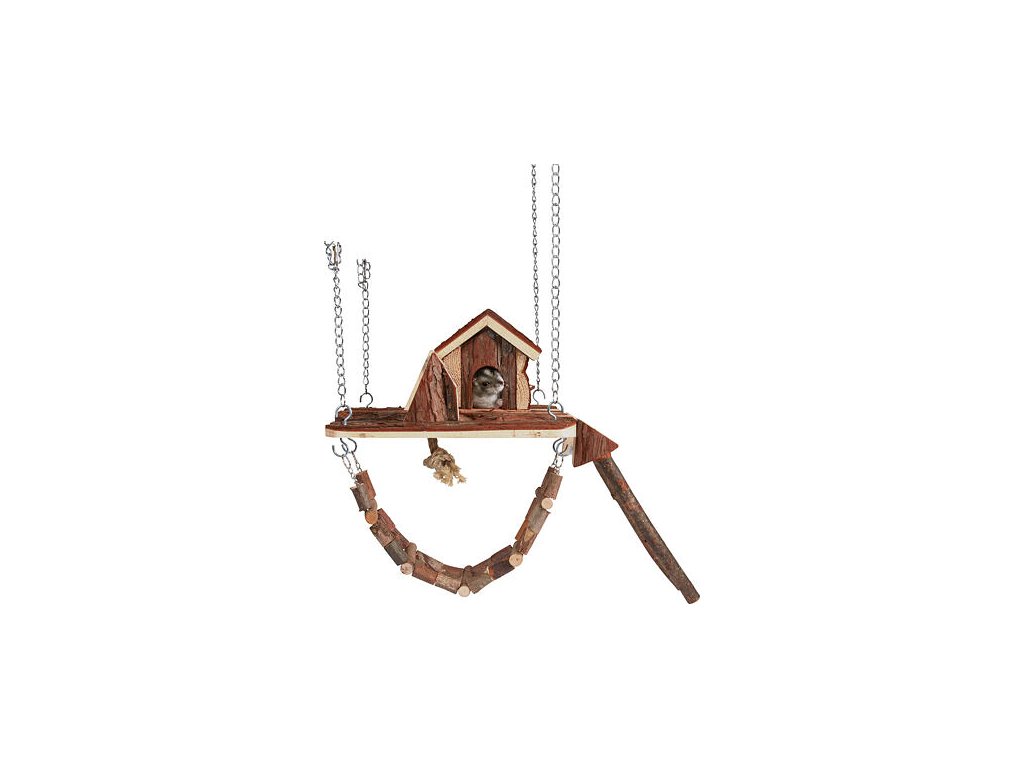 Drevené závesné ihrisko s domčekom JANNE pre myši, škrečky26x22cm