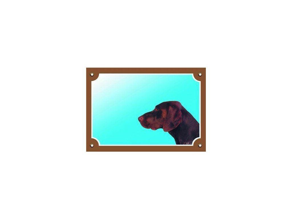 Farebná ceduľka Pozor pes, Nemecký stavač hnedý
