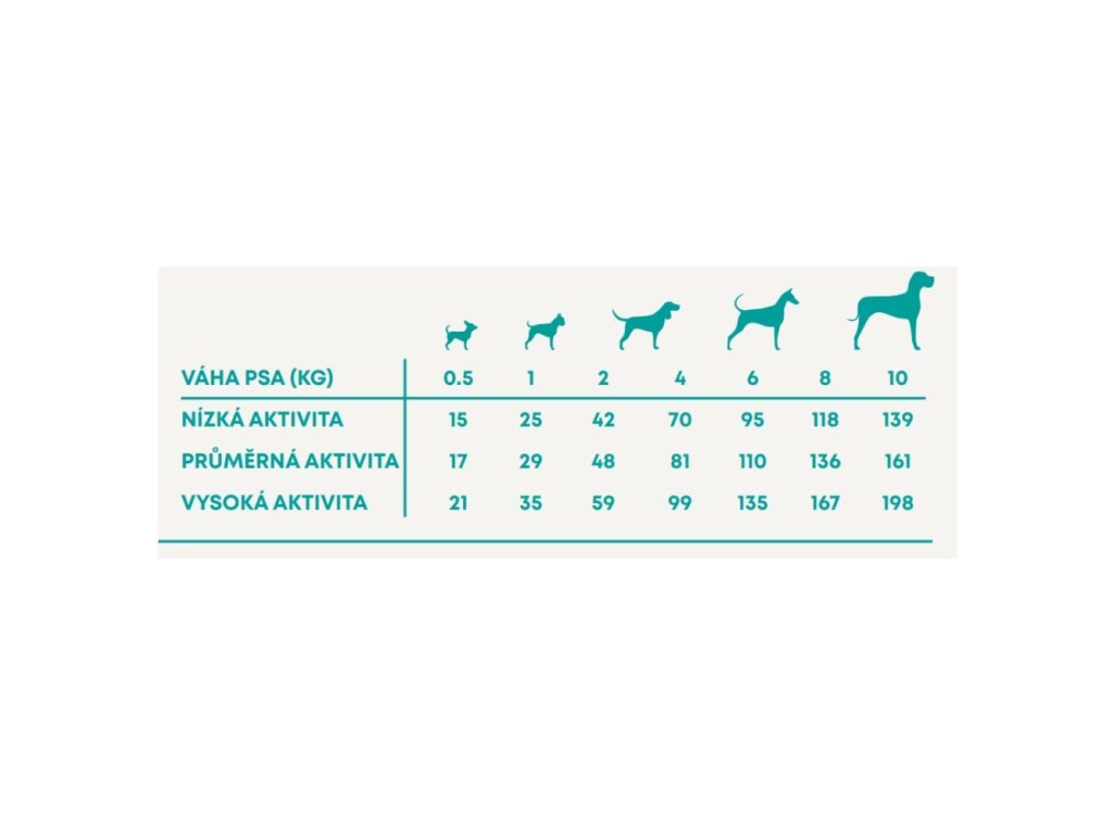 Kŕmny návod: zmenu krmiva je potrebné vykonávať postupne po dobu 7 dní. Ako návod použite tabuľku s dávkovaním. Denné množstvo potravy sa môže pre každého psa líšiť, záleží na úrovni jeho aktivity, plemene a podmienkach prostredia. Dennú kŕmnu dávku podávajte prednostne rozdelenú na 2 až 3 porcie denne, a to vždy v rovnakom čase. Pes musí mať vždy prístup k čistej, čerstvej vode. Skladovanie: skladujte na chladnom a suchom mieste. Obal by mal byť po použití vždy bezpečne uzavretý.