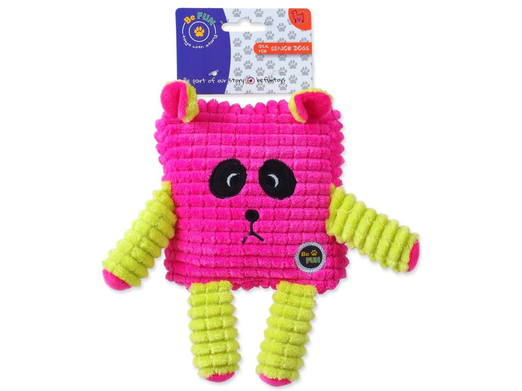 Hračka pre psov BeFUN&Calypso, je ideálnou hračkou pre starších psov, ktorí už trpia rôznymi ťažkosťami s chrupom v dôsledku opotrebovania zubov a prejavov zubného kameňa (zápaly ďasienHračka je vo všetkých miestach mäkká a obsahuje voľné prvky (uši, ruky, nohy), ktoré nabáda zviera k hre. V tele hračky je pieskadlo.