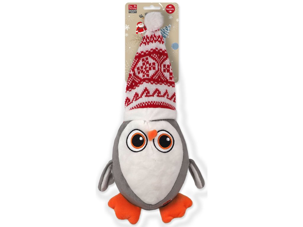 Vianočná hračka pre psov v podobe veľkého tučniaka s čiapkou, ktorý pieska. Skvele tak naláka Vášho psíka k hre a zabaví ho aj pri dlhých zimných večeroch. A pretože je hra kľúčová pre celkové zdravie a pohodu maznáčika, je táto hračka ideálnou cestou, ako si ho psík môže udržať.