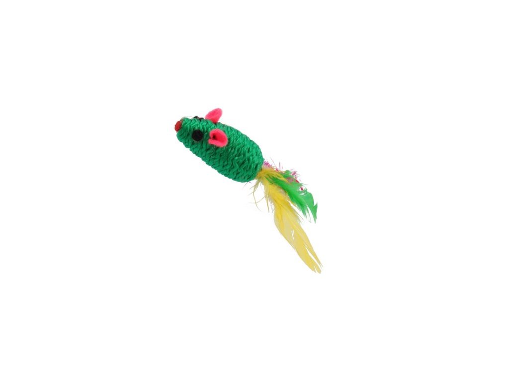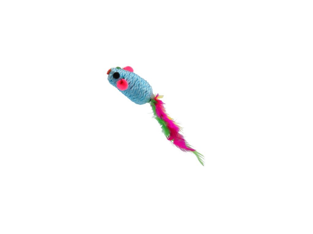 Bavlnená myška s pierkami. Hračka, ktorej Vaša mačka neodolá. Pierka lákajú k aktívnej hre.