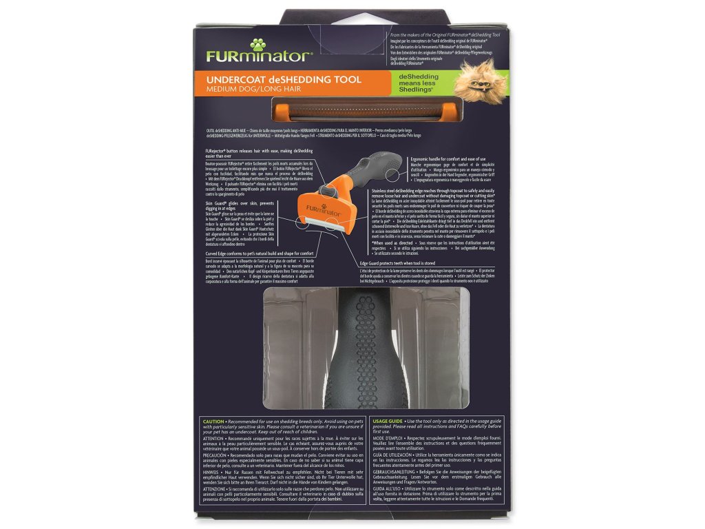 FURminator® hrablo na vyčesávanie podsady pre psov stredných plemien s hmotnosťou do 9-23 kg s dlhou srsťou. Odstraňuje až 99 % uvoľnených chlpov. Pomáha tiež redukovať tvorbu chlp. Používajte na suchú srsť raz či dvakrát týždenne po dobu 10 až 20 minút.