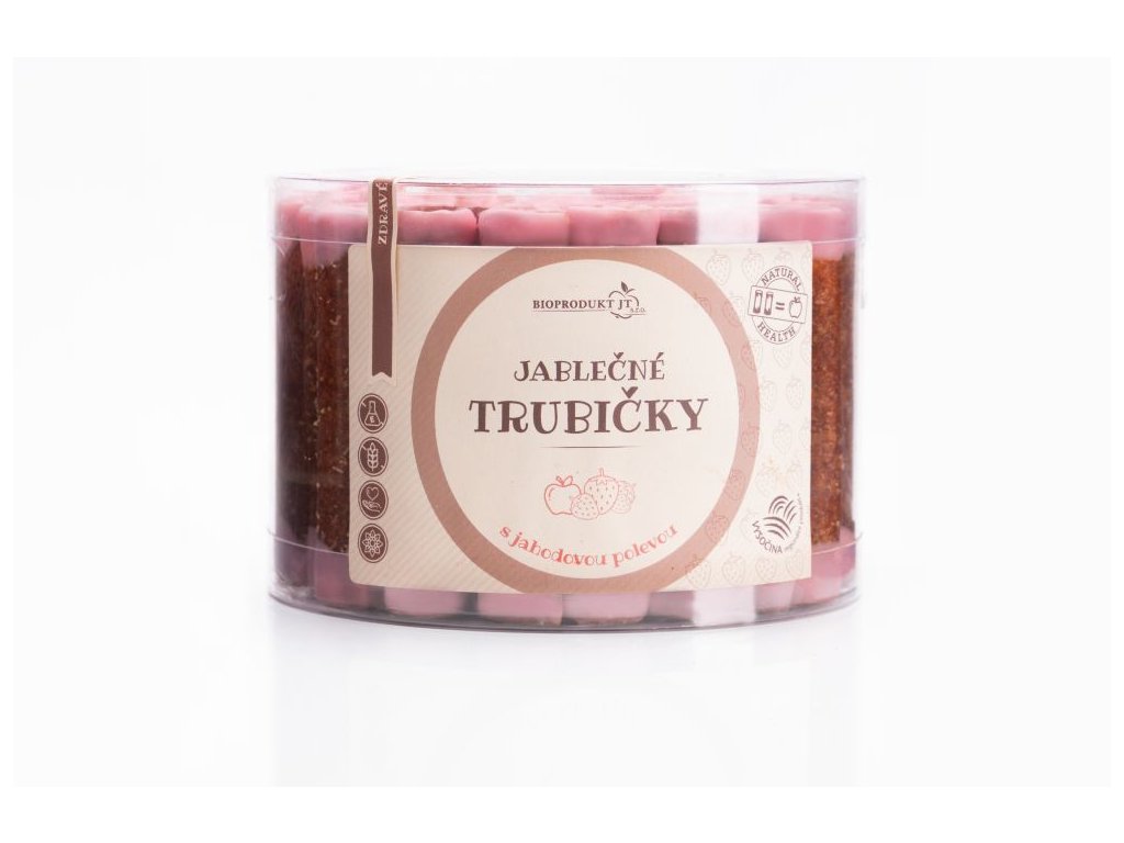 Jablkové trubičky s jogurt.polevou s jahodovou príchuťou dóza 540g