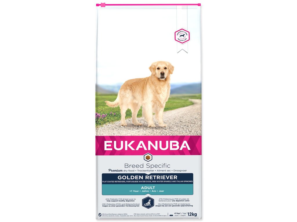 Zlatí retrievery sú priateľskí a inteligentní psy, dobre vychovaní s veľkým šarmom. Potrebujú nevyhnutné živiny pre nádhernú srsť a trávenie môže využívať výhody prebiotickej vlákniny. Pravidelný pohyb pomáha udržovať optimálny stav tela. Krmivo Eukanuba Golden Retriever je kompletná a vyvážená denná strava určená na udržiavanie lesklej srsti, na podporu zdravých kĺbov a stabilného trávenia.