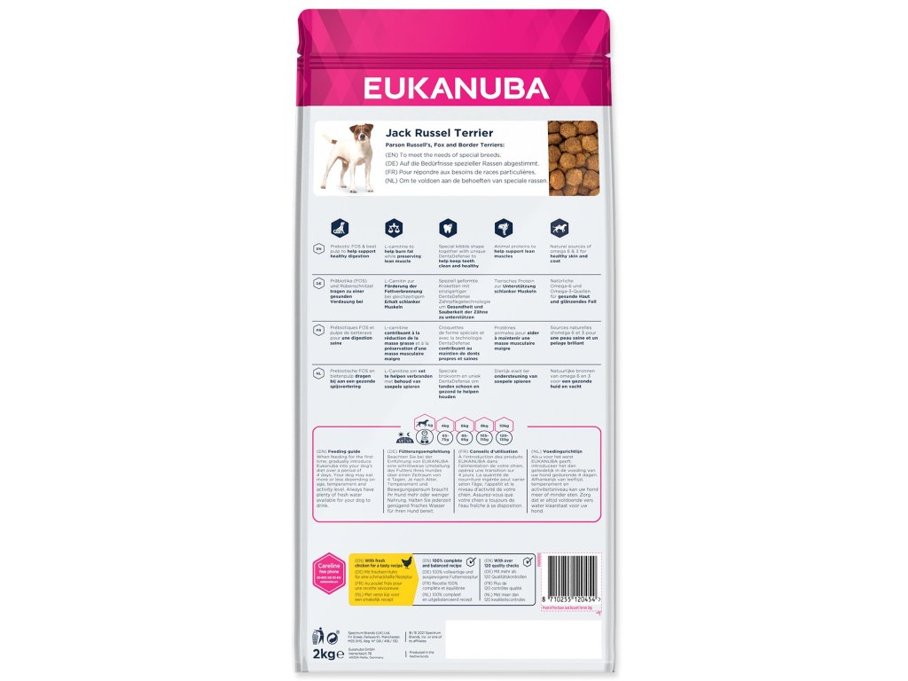 Jack Russell teriéri sú malí, kompaktní atletickí psy, hraví a plní energie, ale zároveň nebojácni a obdivovaní pre svoju nezávislosť a odvahu. Sú veľmi aktívni a budú šťastní, keď budú mať dostatok priestoru na beh, lov a hru. Podobne ako psy iných malých plemien môžu byť náchylní na problémy s chrupom. Preto môžu využívať výhody na mieru prispôsobenej výživy. Krmivo Eukanuba Jack Russell teriér je kompletná a vyvážená denná strava určená na podporu aktívneho životného štýlu, podporu pohyblivosti kĺbov a zdravé tlamičky týchto psov.