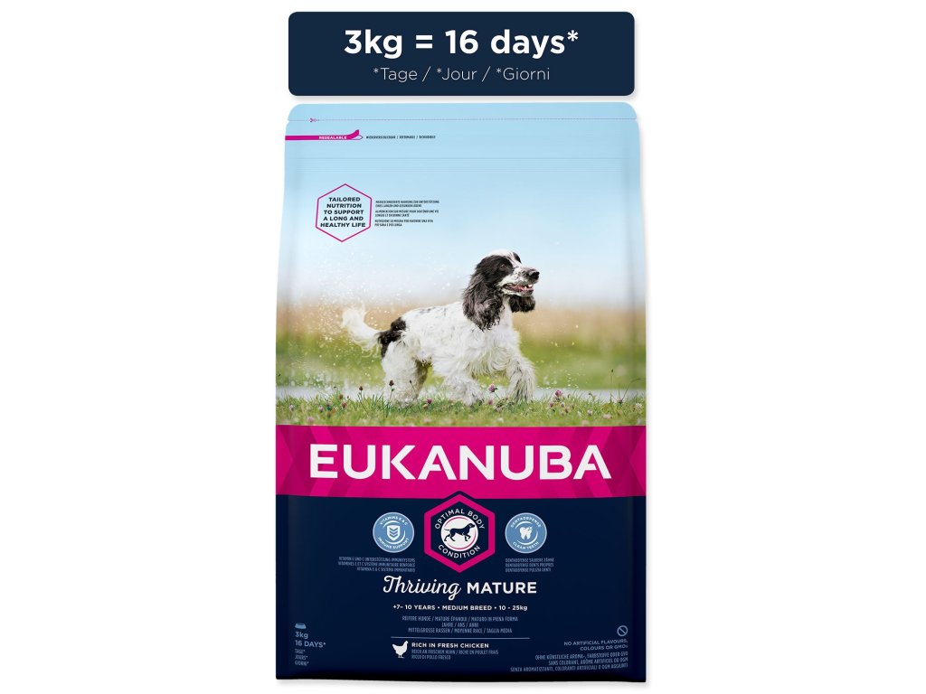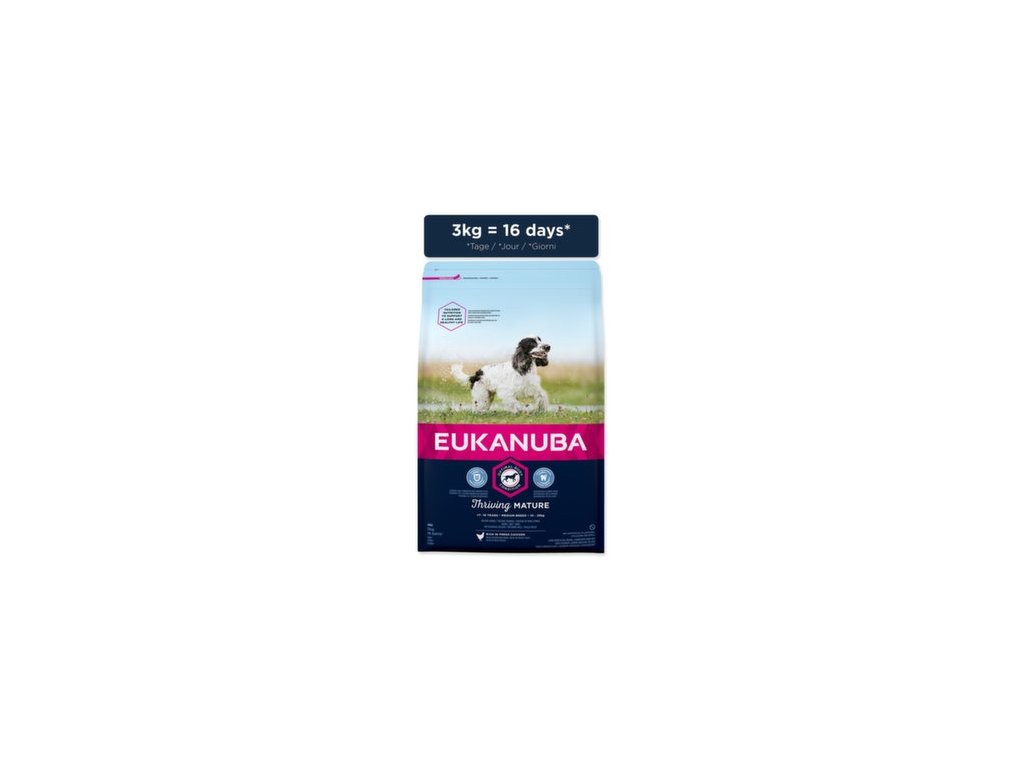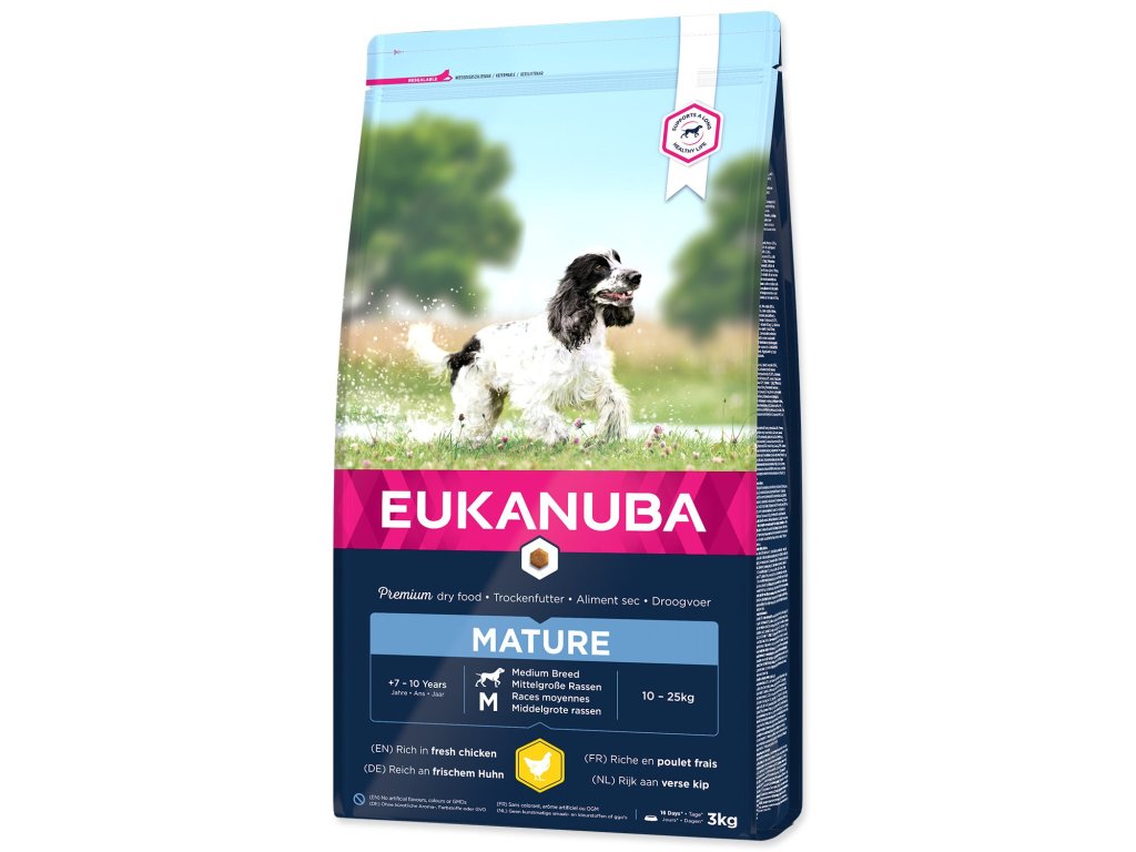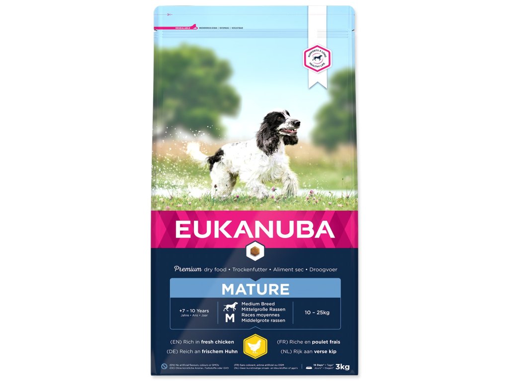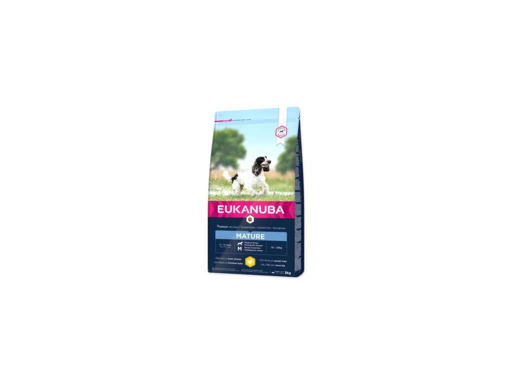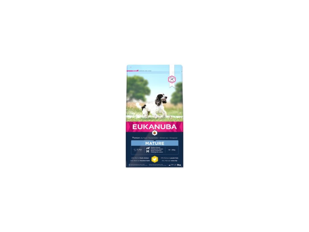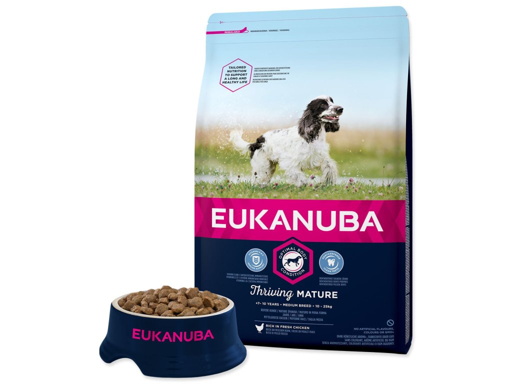 Nová EUKANUBA vylepšená receptúra 7 – poskytuje na mieru upravenú výživu pre zdravé starnutie vášho staršieho psa. Naša jedinečná na mieru upravená receptúra pre stredne veľké staršie psy obsahuje zmes vlákniny, prebiotiká FOS a repné dužiny pre podporu zdravého zažívania, vápnik pre zdravé kosti, glukosamín pre zdravé kĺby, prirodzený zdroj mastných kyselín omega-6 a omega-3 pre zdravú kožu a srsť, pre podporu imunitného systému. Naše unikátne granule v tvare šesťuholníka s prídavkom DentaDefense taktiež pomáhajú s udržiavaním čistých a zdravých zubov. Pokročilá výživa pre stredne veľké staršie psy so zameraním na podporu optimálneho telesného stavu a celoživotnú pohodu. ysiwyg/Image/productsMedia/ikonky/Zubypes2.png" width="100" />