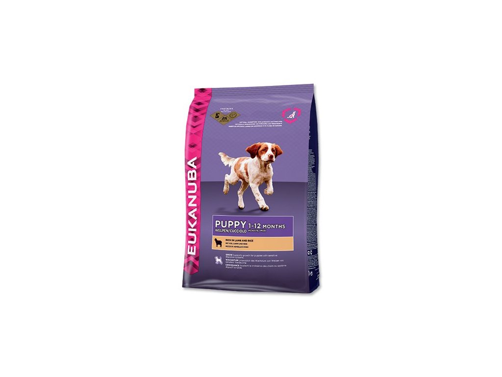 100% kompletné a vyvážené krmivo pre šteňatá<-> lign: center;">Krmivo vhodné pre šteňatá všetkých plemien od 1 do 12 mesiacov, uprednostňujúce krmivo s jahňacím mäsom pre ľahké trávenie a vynikajúci stav pokožky a srsti. S bohatým obsahom ;">Jahňacie mäso predstavuje veľmi dobre stráviteľnú výživu, vhodnú aj pre citlivých psov. Táto strava od spoločnosti Eukanuba šteňatám poskytuje všetky živiny, dôležité vitamíny a minerály potrebné na optimálny rast. Obsahuje prísady a vysoké množstvá živočíšnych proteínov. 100% kompletná a vyvážená výživa pre šteňatá všetkých plemien uprednostňujúce krmivo s jahňacím mäsom pre ľahké trávenie a vynikajúci stav pokožky a srsti.