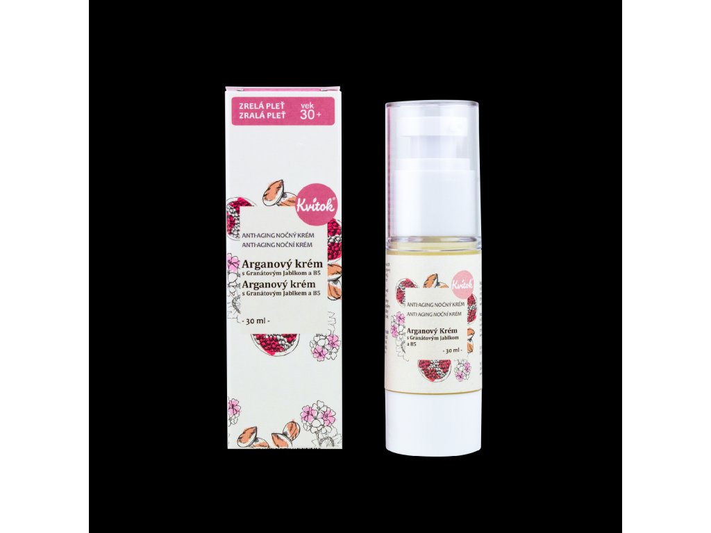 Kvitok Nočný arganový krém pre zrelú pleť 30+ (30 ml) - spomaľuje starnutie pleti