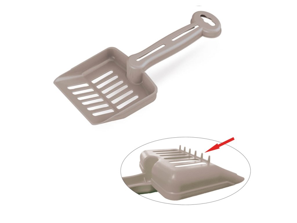 Praktická dierovaná lopatka pre ľahké oddelenie exkrementov od podstielky. Na rukoväti otvor na zavesenie.