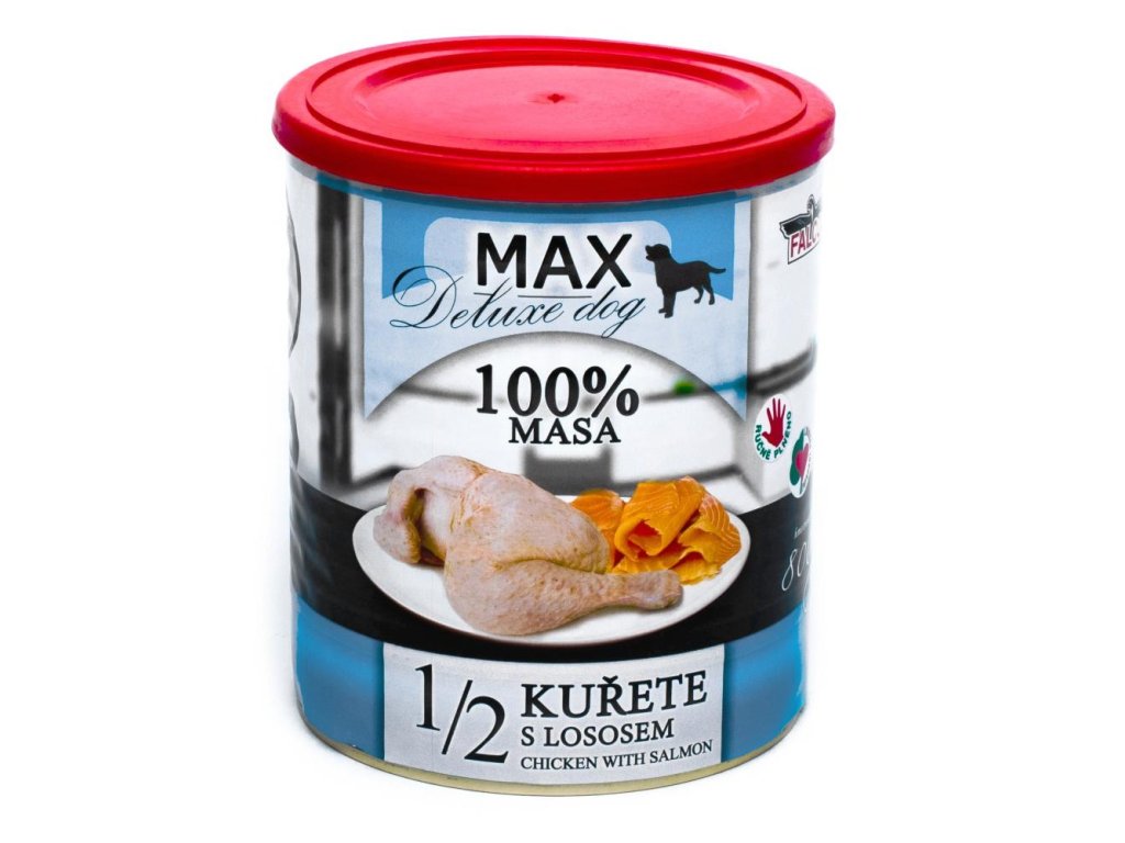 MAX Deluxe Dog 1/2 kurčaťa s lososom, konzerva 800 g