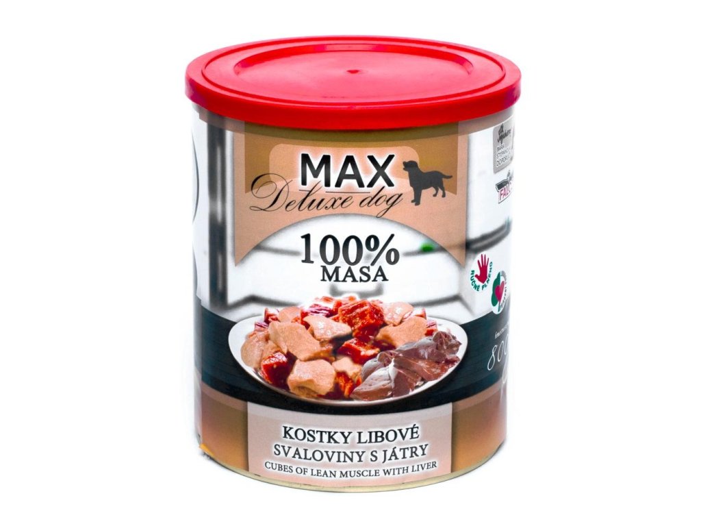 MAX Deluxe Dog kocky chudé svaloviny s pečeňou, konzerva 800 g