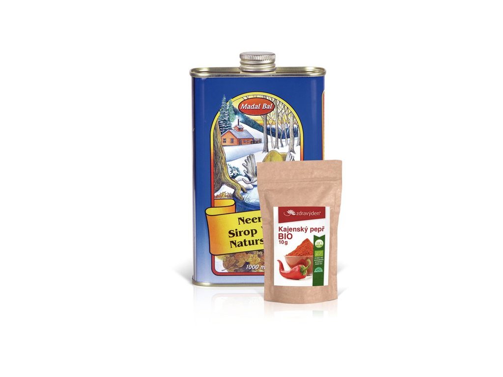 Neera na sedmidenní kúru: 1 litr Neera přírodní stromový sirup, Kajenský pepř BIO 10g a leták s podrobným popisem kúry.
