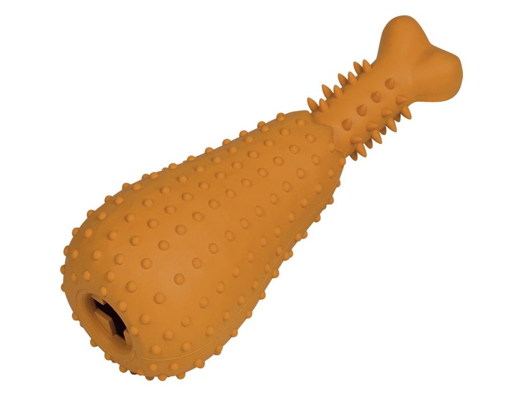 Pevná gumová hračka Nobby v tvare kuracieho stehienka. Hračka má otvor, ktorý môžete plniť suchými maškrtami. Vhodné aj k samostatnej hre. Farba oranžová. Hračka je vyrobená z odolnej gumy. (Pozor! nejedná sa o tzv. nezničiteľný výrobok). Veľkosť: 23,5 cm Upozornenie: Rovnako ako u iných hračiek pre psov by sa aj s touto hračkou malo zviera hrať pod dohľadom pána alebo inej zodpovednej osoby. Prosíme dbajte na to, aby hračka, s ktorou sa Váš pes hrá, bola nepoškodená. Stav hračky pravidelne kontrolujte. V prípade, že je hračka poškodená alebo jej už chýbajú niektoré súčasti, túto hračku prosím nahraďte. Zamedzíte tak prípadnému zraneniu Vášho psaDodatočné parametre