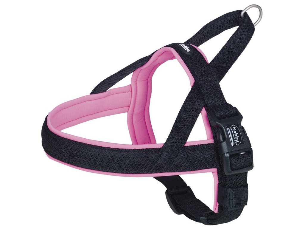 Nórsky postroj pre psov vyrobený z nylonu a neoprénu. Vyznačuje pohodlným a ľahkým obliekaním. Je vhodný ako na každodenné prechádzky, tak na tréningy najrôznejších športov (agility, flyball - tu poslúži predovšetkým pohodlné očko na chrbte pre ľahkú manipuláciu so psom). Vrchná vrstva z nylonu vzhľadovo pripomína sieťku. Matné strieborné kovové prvky (krúžky + karabína). Veľkosť: dĺžka hrudnej časti 62 cm šírka popruhov 40/45 mm plynule nastaviteľný obvod hrudníka 75-98 cm Neoprénová podšívka je šetrná k srsti psa, ale tiež rýchlo schne, keď sa pes v lete rád kúpe. Pohodlné polstrovanie z neoprénu v oblasti hrudníka, krku a ramien. Optimálne pohodlie pri nosení a tiež zaistenie, že psa pri behu postroj nedreje a nevytrháva srsť. Jednoduché a rýchle nasadzovanie postroja. Rýchle zapnutie vodidla pomocou horného pútka. Nórsky postroj bol vyvinutý špeciálne pre aktívnych psov a chovateľov psov, a preto je ideálny pre jazdu na bicykli alebo jogging. Postroj zaručuje Vášmu psovi pohodlné nosenie, aj keď mierne ťahá. Všité držadlo na obojku umožňuje majiteľovi psa, aby mohol rýchlo reagovať v vzniknutej situácii a prípadne nechal psa ísť pri nohe. Postroj Nobby zaručuje vysokú kvalitu a funkčnosť v kombinácii s atraktívnym designom.Dodatočné parametre