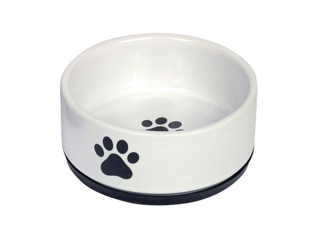 Kvalitná keramická miska na krmivo alebo vodu. Farba biela s čiernou labkou. Leštený vzhľad. Vonkajšia veľkosť ø 14, výška 6,5 cm Veľkou výhodou je odnímateľný protišmykový silikónový krúžok na spodnej strane misky. Výrobca Nobby (Nemecko)Dodatočné parametre