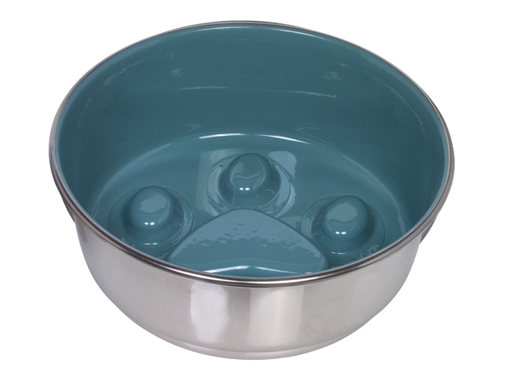 Miska ušľachtilej ocele s vypuklým prostriedkom, zabraňuje hltanie a redukuje prudkú konzumáciu až päťnásobne, gumový krúžok na spodnej strane zaistí stabilitu. Rýchle hltanie často spôsobuje u psov zažívacie problémy. V takom prípade môže byť dobrým pomocníkom miska redukujúca hltanie: Vypuklina uprostred misky znižuje rýchlosť príjmu potravy až päťnásobne. Tým dochádza počas kŕmenia k uvoľneniu a lepšiemu tráveniu. Gumová úprava na spodnej strane zabráni pohybu misky po podlahe. Miska má zosilnené dno, disponuje tak ťažšou váhou. Objem 1,60 l. Celková veľkosť ø 20 cm.Dodatočné parametre