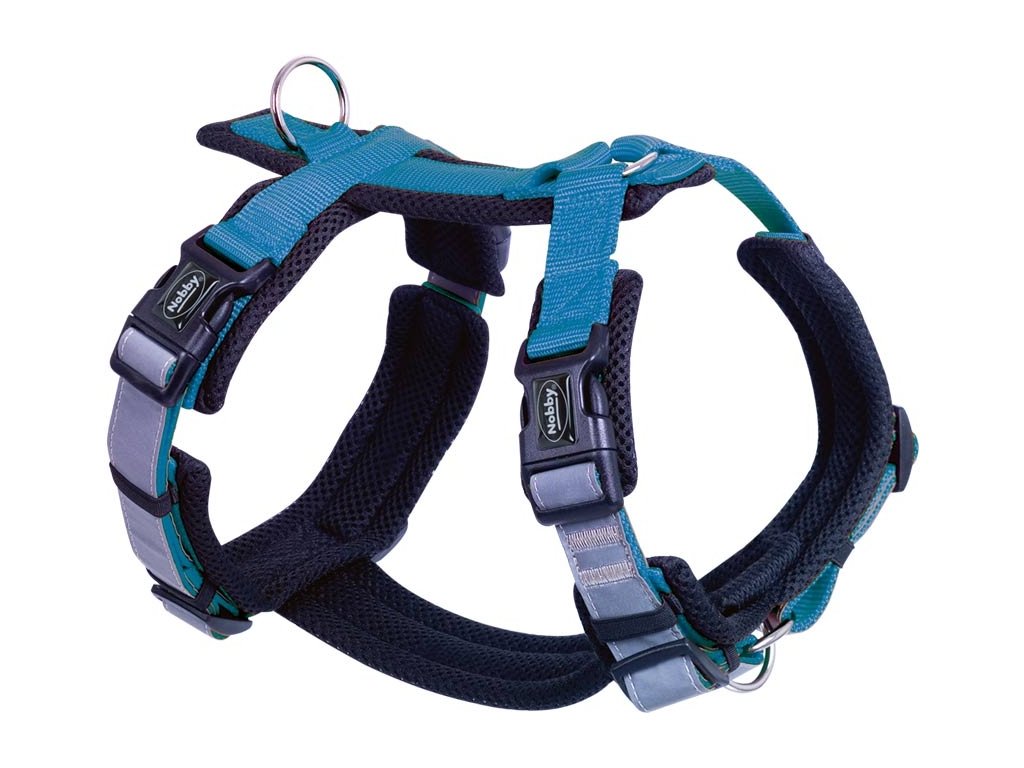 Plynulo nastaviteľný postroj pre psov Nobby z kolekcie DAILY WALK COMFORT je vďaka podšitiu mäkkou sieťovinou veľmi pohodný a vhodný tak na denné nosenie. Vďaka možnosti jednoduchého nastavenia veľkosti postroj perfektne sedí, nikde nedreje a umožňuje psovi prirodzený a neobmedzený rozsah pohybu. Postroj sa ľahko navlieka a vyzlieka za pomoci pevných plastových spôn. Postroj je vyrobený z extra silnej, priedušnej sieťoviny a nylonu a ponúka optimálne pohodlie pri nosení vďaka dokonalému rozloženiu napätia znižuje tak na krčnú chrbticu. V horúcich letných dňoch ju možno pohodlne ponoriť do vody, aby sa pes pred prechádzkou ochladil. Navyše so svojimi dobre viditeľnými reflexnými prúžkami slúžia na dodatočnú bezpečnosť na ceste. Postroj Nobby ponúka možnosť pripnúť vodítko buď na chrbte, alebo na hrudi, čo je užitočné najmä pre psov, ktorí silne ťahajú. Farba: svetlo modrá Veľkosť L pre psy o veľkosti: hrudník: 42-58 cm boky: 63-86 cmDodatočné parametre